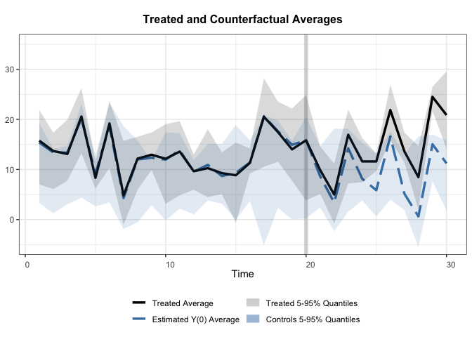 plot(out, type = "counterfactual", raw = "band", xlab = "Time",