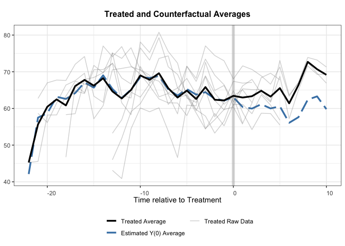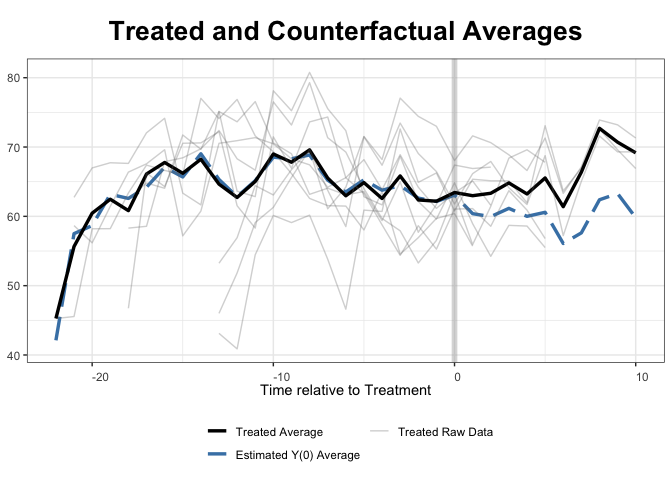 Interesting that this method lands on a slightly different estimate than the previous paper. I think that this is due to some missing covariates. It appears that gsynth doesn’t handle missing data too well, which is ok.