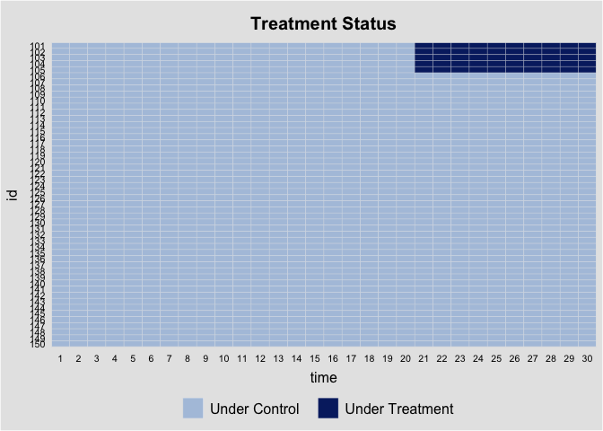 panelview(Y ~ D, data = simdata,  index = c("id","time"))