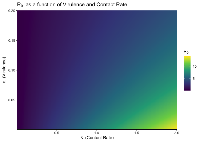 We can then explore the surface generate over a range of virulence and contact rates.